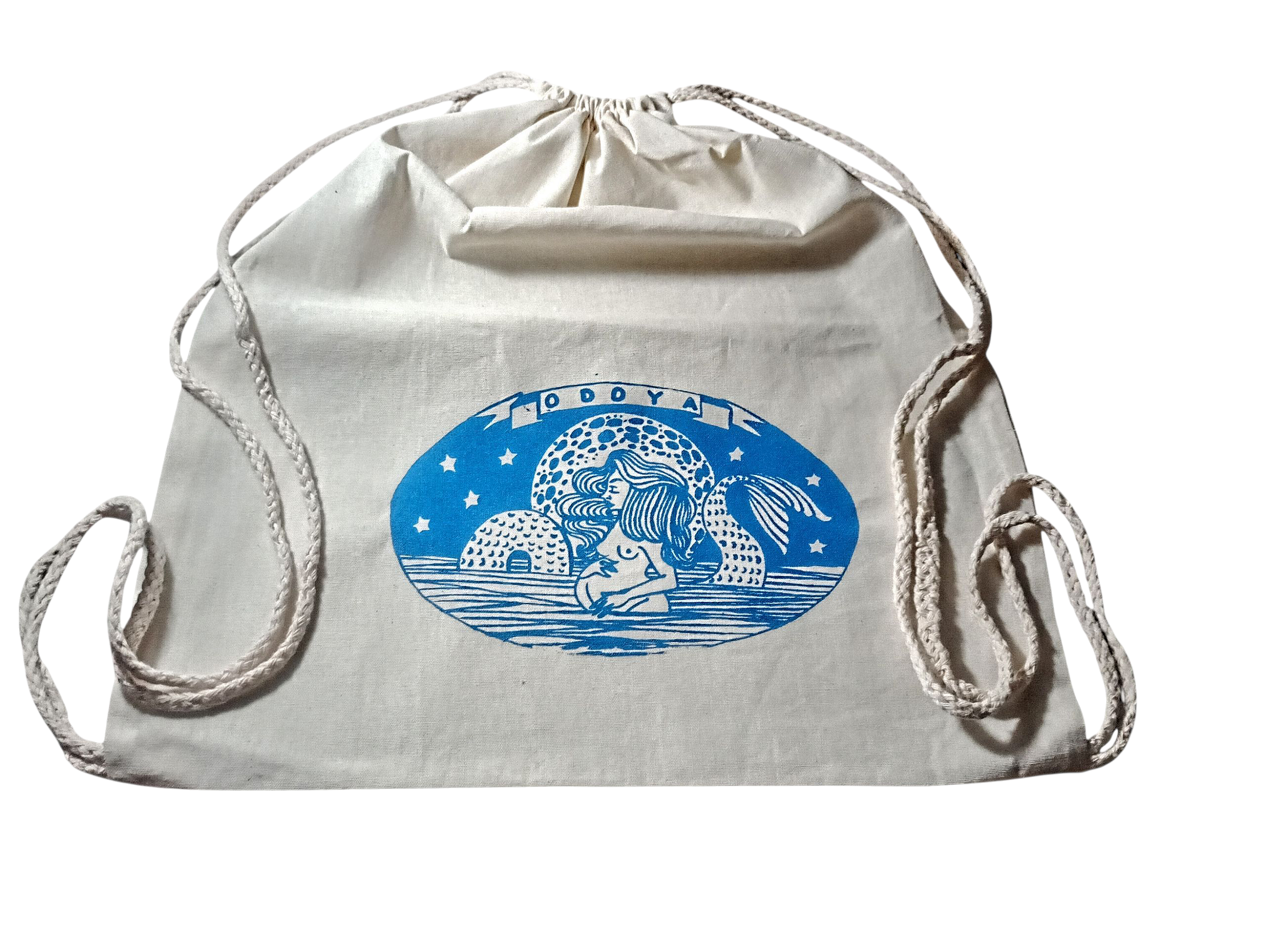 🫧:𓇼 Ecopack (mochila-saco de algodão cru) artesanal de Iemanjá estampada em serigrafia 𓇼:🫧