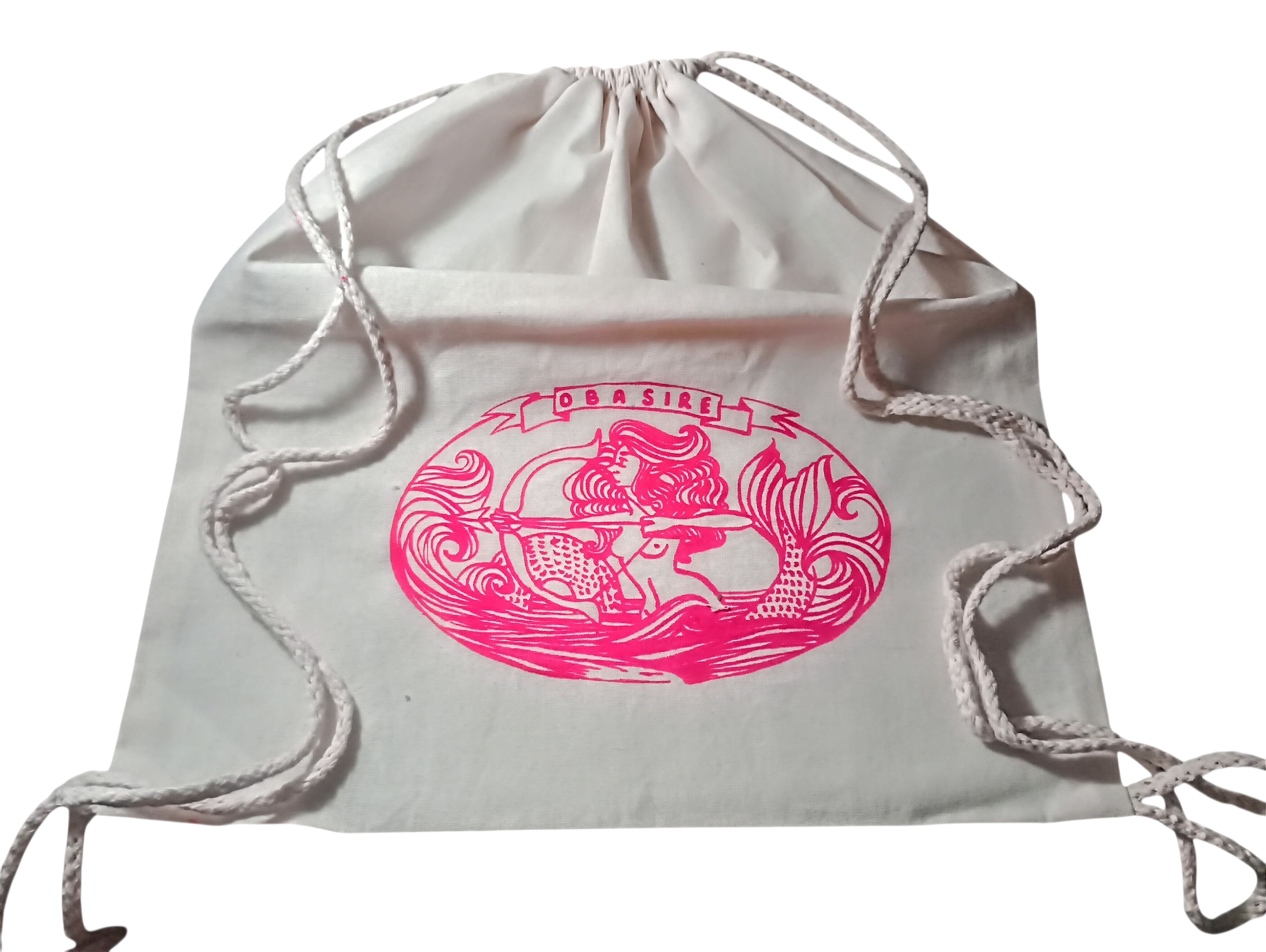 🫧:𓇼 Ecopack (mochila-saco de algodão cru) artesanal de Obá estampada em serigrafia𓇼:🫧